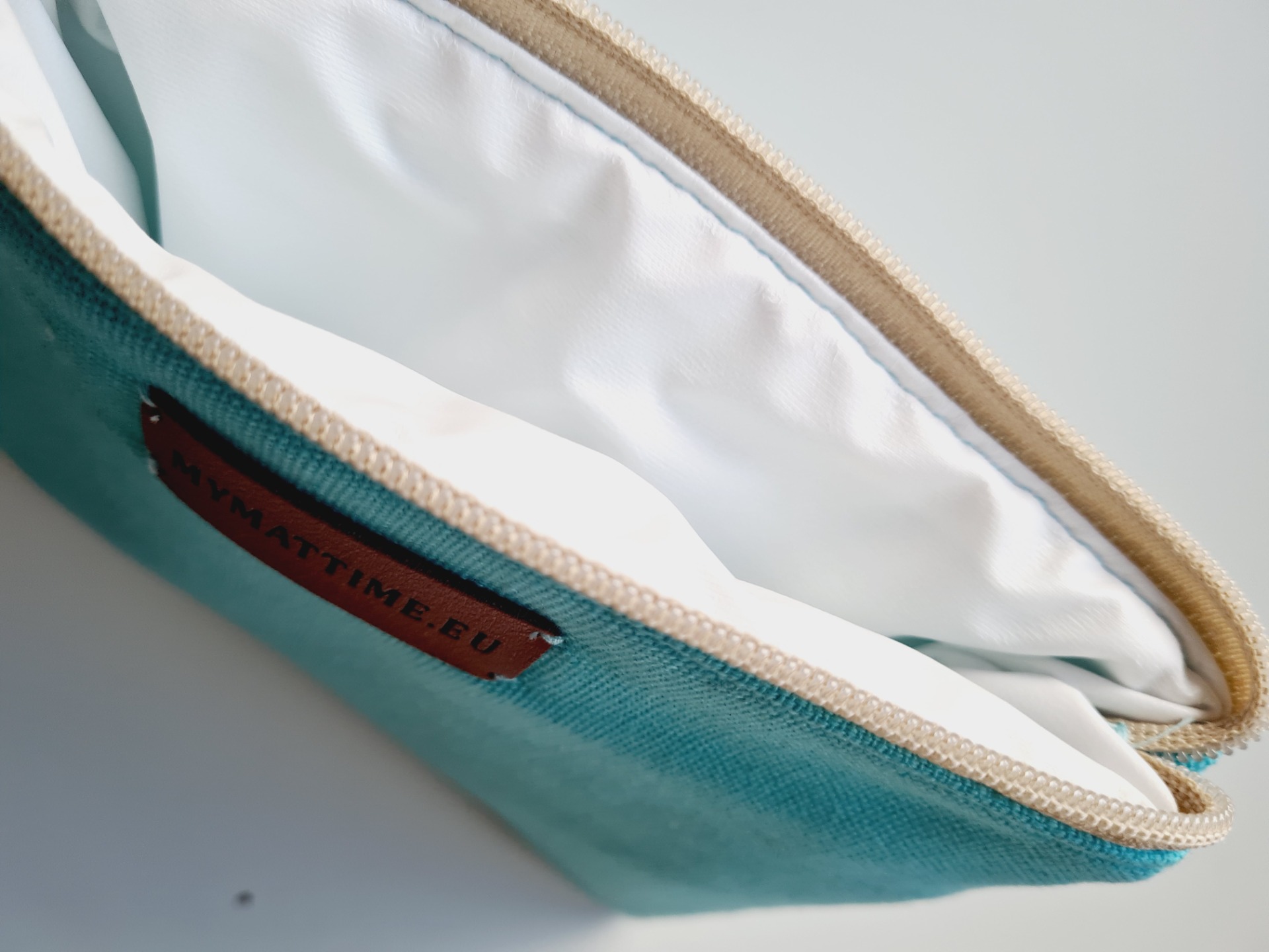 Vízálló neszesszer, sminktáska, tisztálkodótasak, fürdőruha tárolására is alkalmas. Türkiz színben.