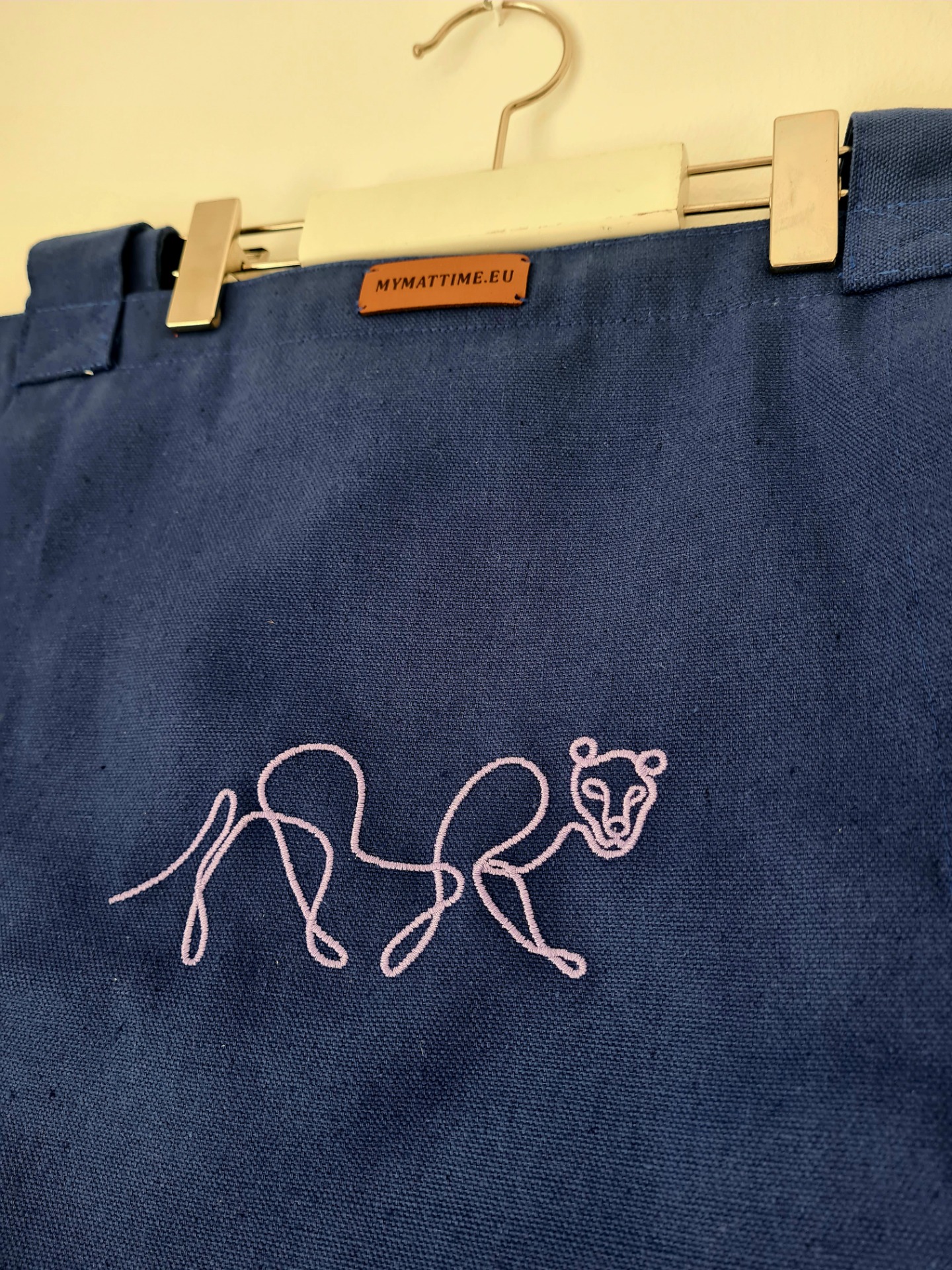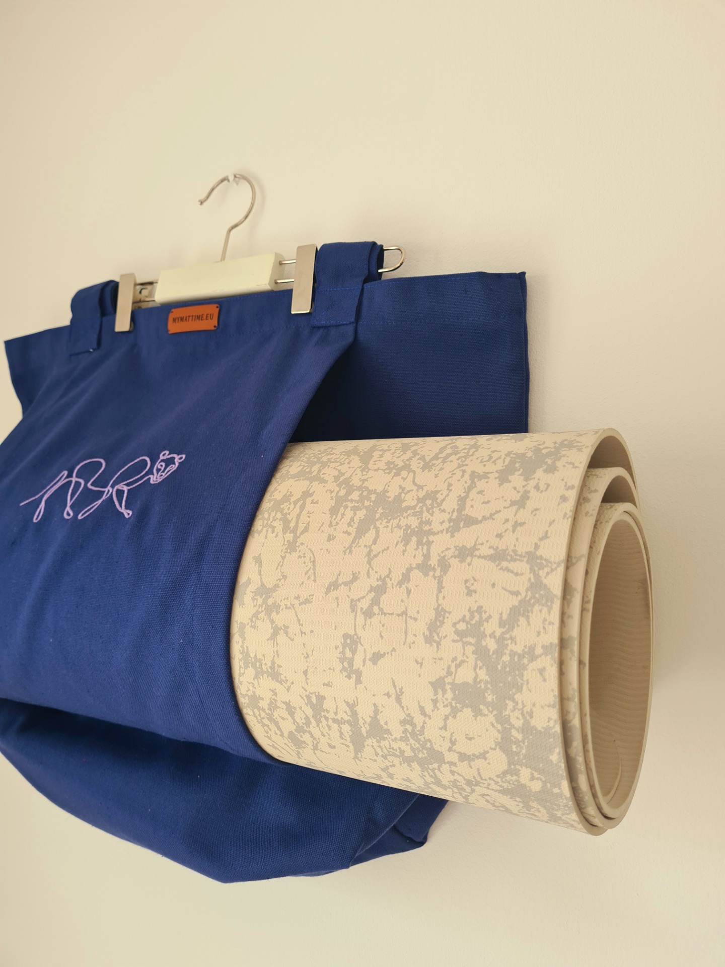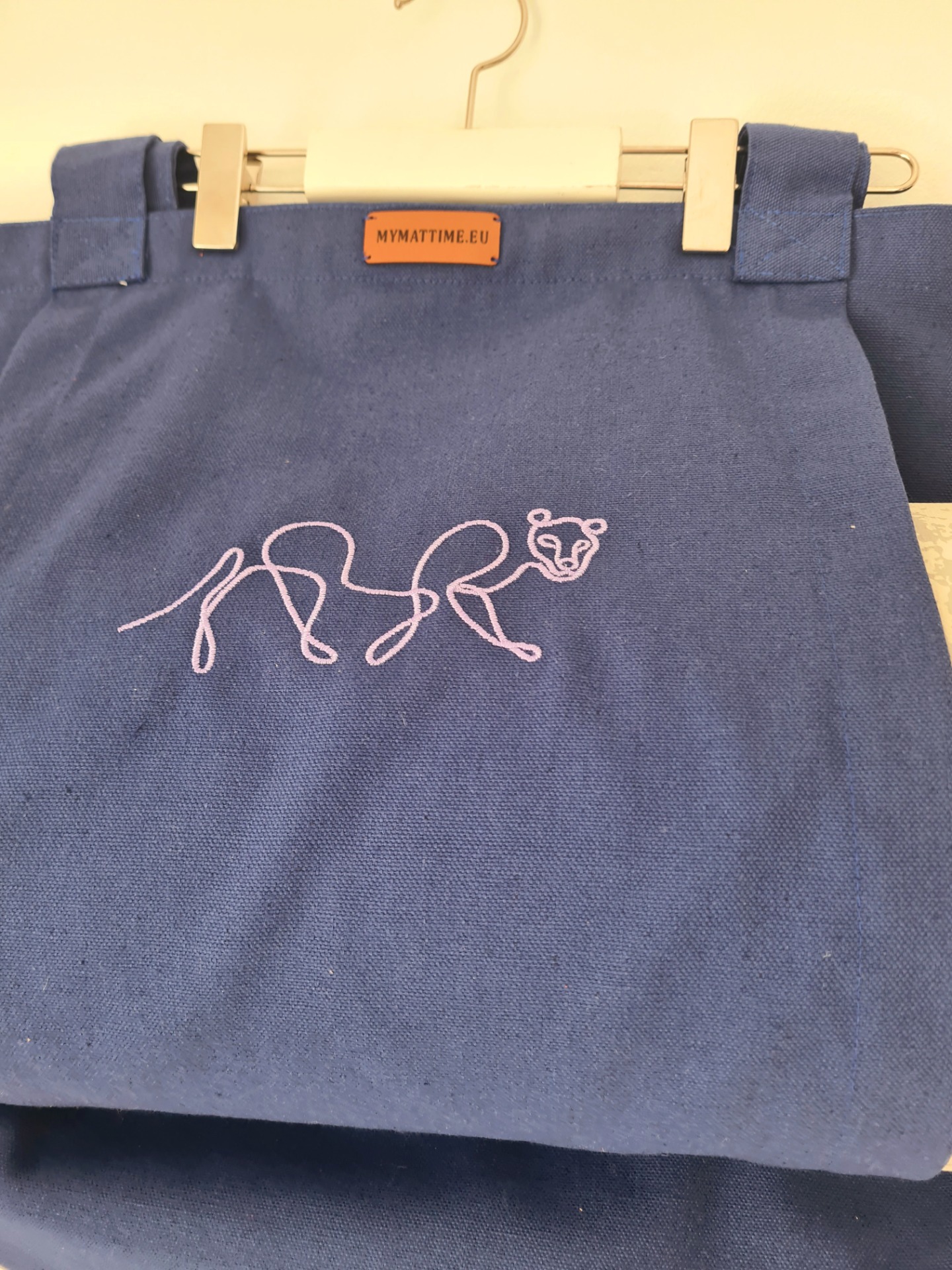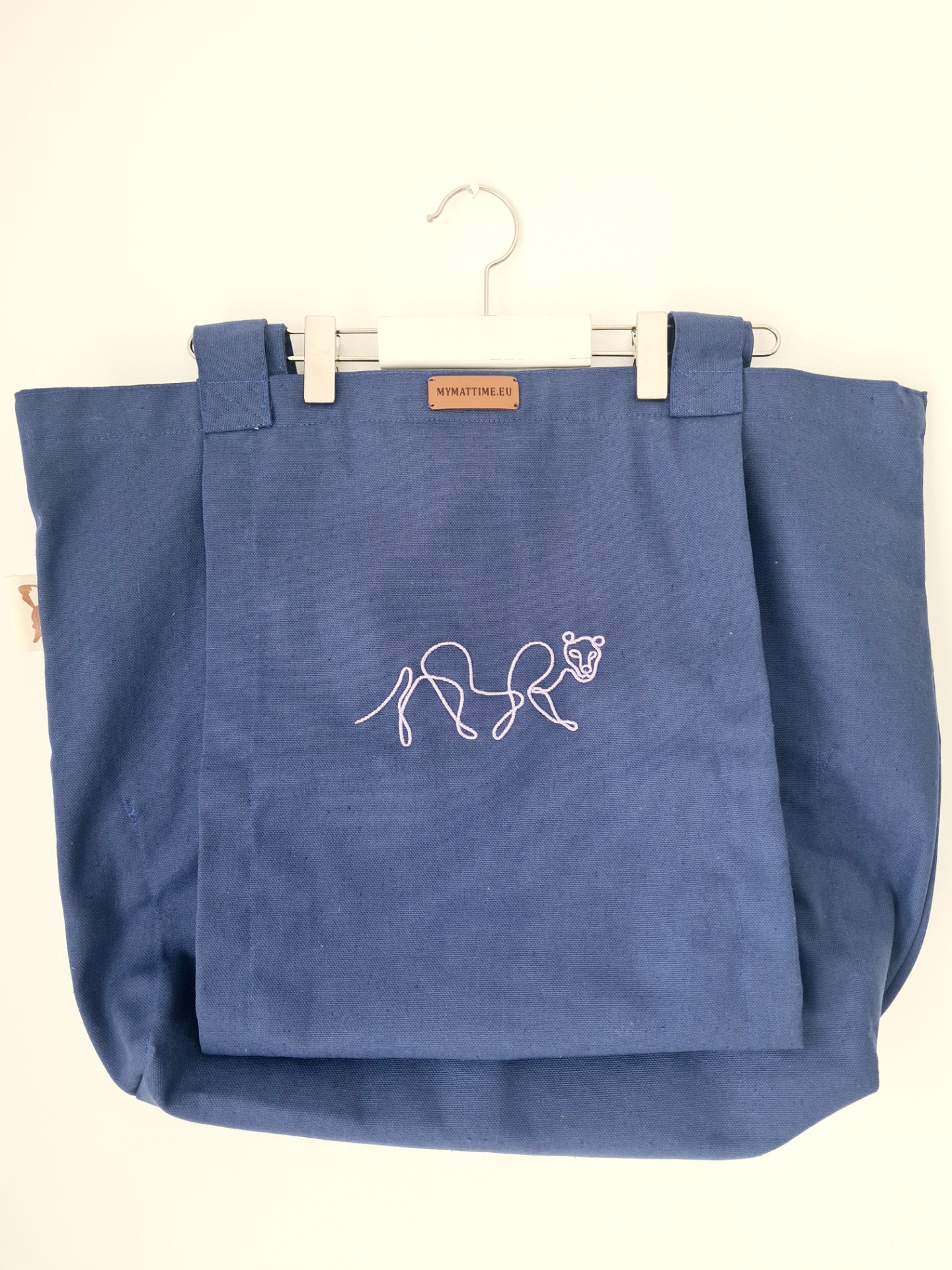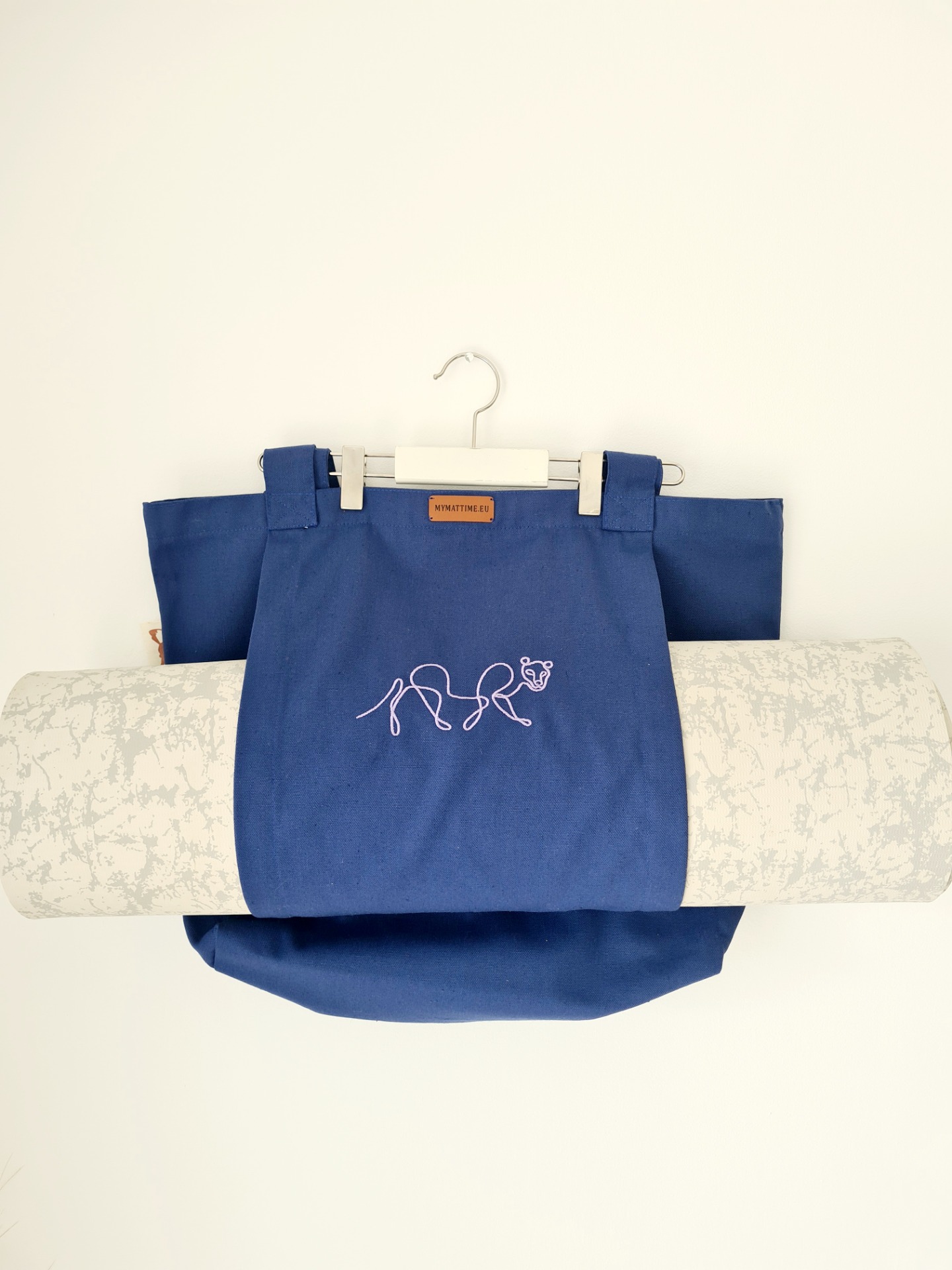 Mymattime vászon jóga, pilates és strandtáska. Azúrkék színben,light rózsaszín puma sziluett mintával.