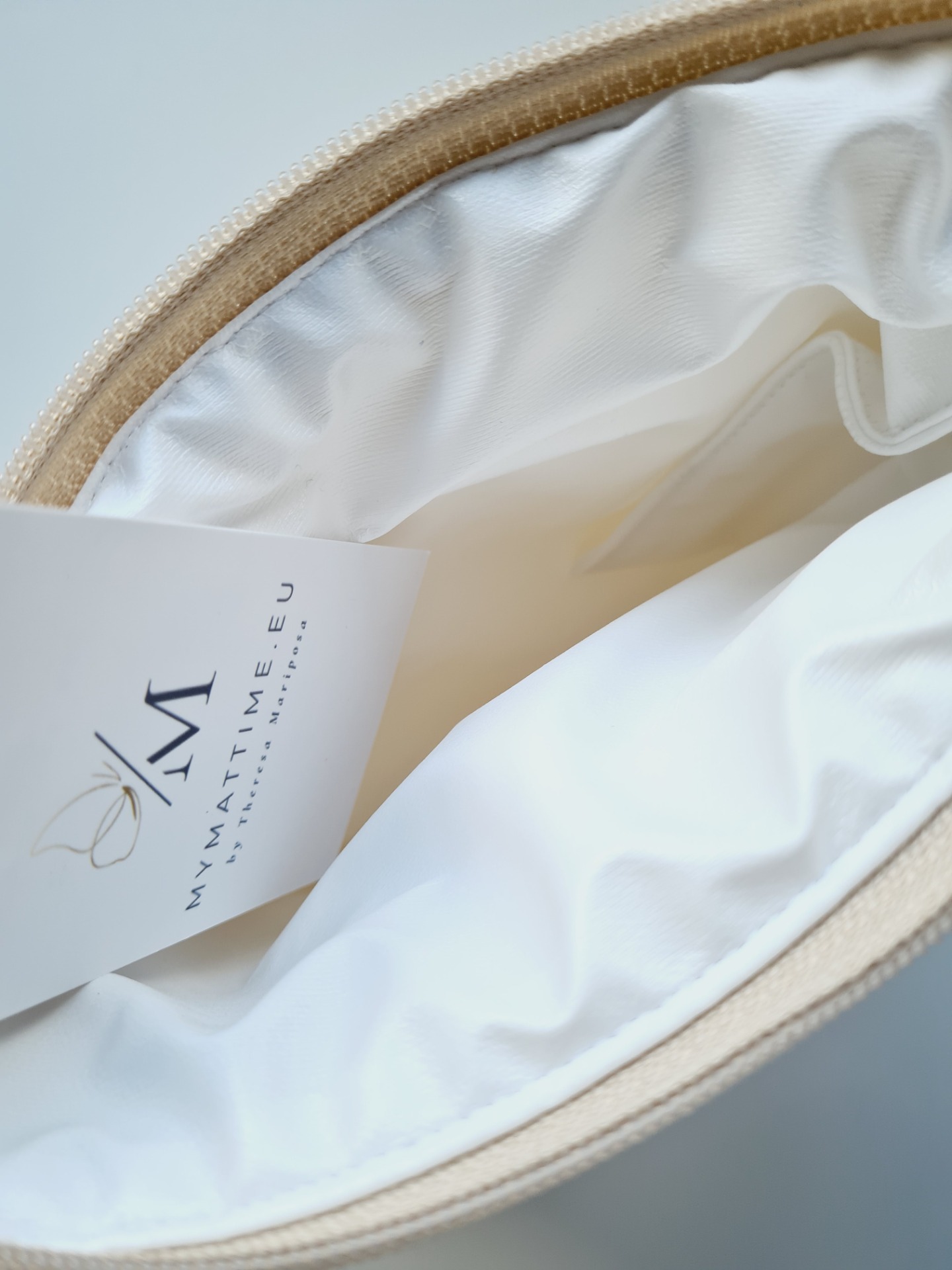 Matractartó táska vászon anyagával, színével kívül megegyezik, belül vízálló bélés található.